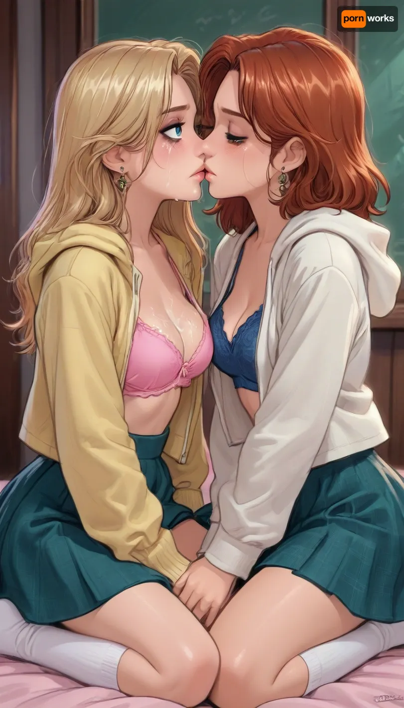 (reiq style:1), 2 women, on knees in front of you, hoodie, bra, skirt, long socks, reluctantly kissing each other, cum on faces, cum on breasts, sad, embarrassed, ruined makeup, crying, tears in eyes, Melkor Mancin artstyle, score_9, score_8_up, score_7_up, cute, doodle, ratatatat74, <lora:cutedoodle_XL-000012:1.7>, <lora:ratatatat74-000050:1.6>, <lora:outline_xl_kohaku_delta_spv5x:1.5>, <lora:cartoon_stickers_xl_v1:.8>, <lora:Back_Shot-000005:.8>