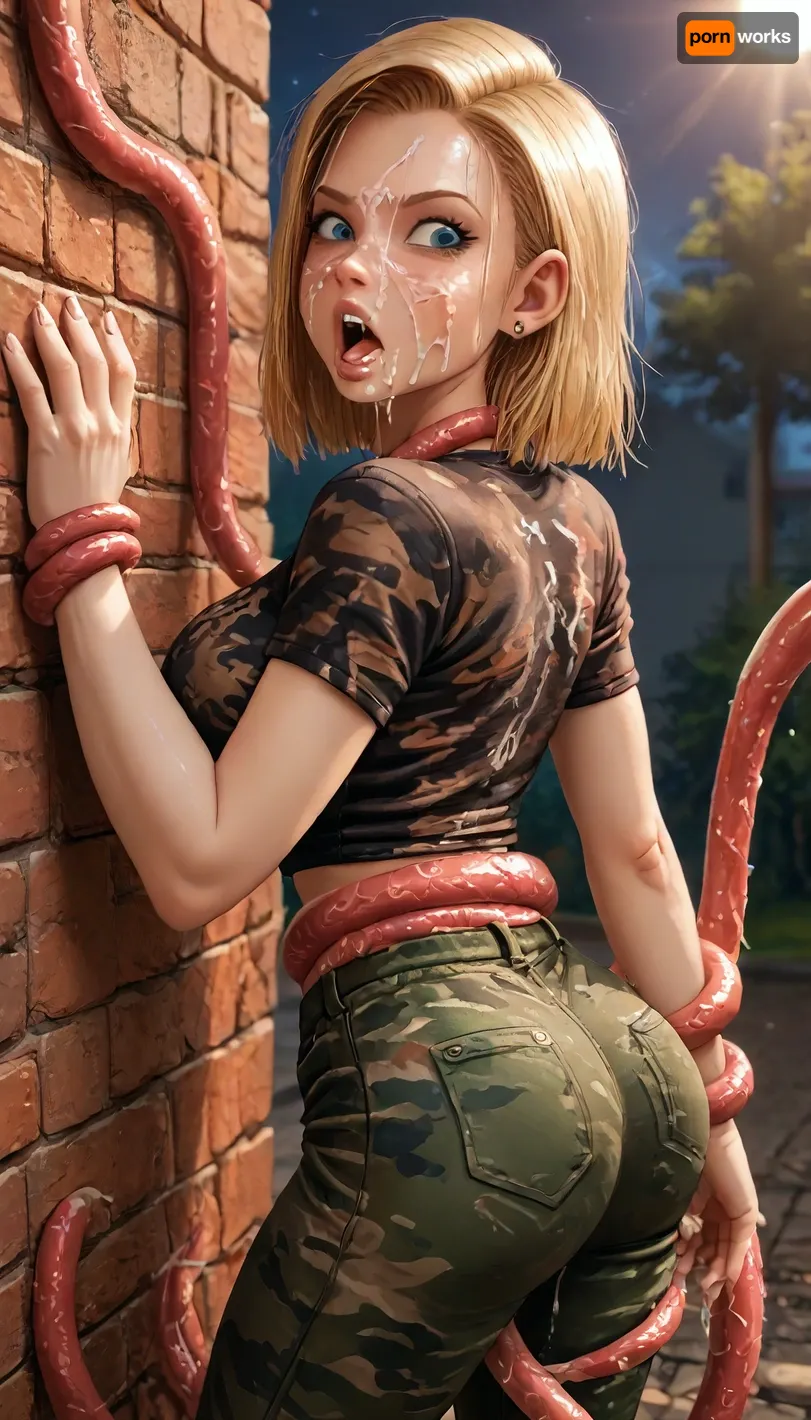 (Jack cayless art style), android18, (milf1:2), (Hot sexy female soldier latina:1.3), (((wearing skintight camouflage shirt, army pants, perfect booty))), Captive, restrained arms on her back legs outstretched by tentacles, (((in the park at night))), view from behind, phat curved ass, (((multiple tentacles around her body restraining her arms and waist))), (screaming loud:1.5), big curvy figure, lift leg slightly up on wall, hand on hip/butt, (blonde frizzy long hair:1.3), tentacle rips her top, pants torned to shreds, torture, captive, tan skin, tanned skin, vintage, extremely beautiful, perfect face and eyes, realistic eyes, focused eyes, perfect hands and fingers, (big boobs:1.4), ultra realistic, masterpiece, best quality, high definition, (((perfect display of tentacle attack))), ((Ultimate realistic photo)), (((dynamic sexy pose))), (((bright sunlight))), (pants shirt torned to shreds:1.5), tentacle gangbang, tentacle penetrate pussy violently, ((tentacle deepthroat:1.5)), tentacle inside her mouth, (cum face1:2), (tentacle sex), sysdeep_android18, <lora:PAseer-SDXL-AcceleratorLighting:.2>, <lora:Android 18 - [Dragonball] - SDXL Version 2:.8>