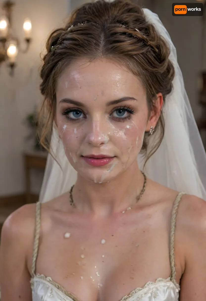 high resolution, high quality, dark scene at night, closeup of face, cute woman, smile, pearl choker, pearl earrings, (Hair in elaborate updo:1.4), (((ropes of thick visible cum on her face:1.6))), cum dripping from face, cum on cleavage, (standing model posing, (wedding dress:1.2), (white corset:1.2), (wedding veil:1.3), (white lace gloves), very cute, smile, out of focus colorful flowers in a romantic outdoor background, outdoors, on, face, bukkake, cum), bellissima, bukkake, cum, 4m1c14, d3, Run3, 1girl, brunette, blue, eyes, freckles, clothing, undershirt, trousers, breeches, necklace, braided, ribbon, <lora:Wet_Makeup__Runny_Mascara-000006:1.4>, <lora:LesFemmesXL_v1.0:2>, <lora:MS_Real_XL_Bukkake:2>, <lora:Amicia_de_Rune:1.4>