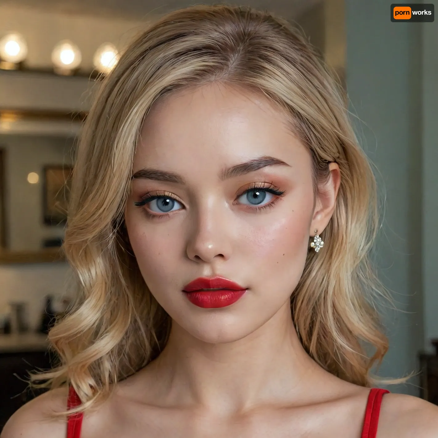 Sexy, ((young)), ((asian small eyes)), (red lips), 20 years old, gold hair blonde, big full lips, big eyes, high prominent cheekbones, clear blue eyes, (Oval Face), ((Diamond Face)), ((angular jawline)), ((Almond shape Eyes)), ((masterpiece)), straight well-defined and symmetric nose with a classic refined bridge and a slightly rounded balanced tip, 4ng3l, face, <lora:SDXL_BetterFaces-LoRA_v1:1.8>