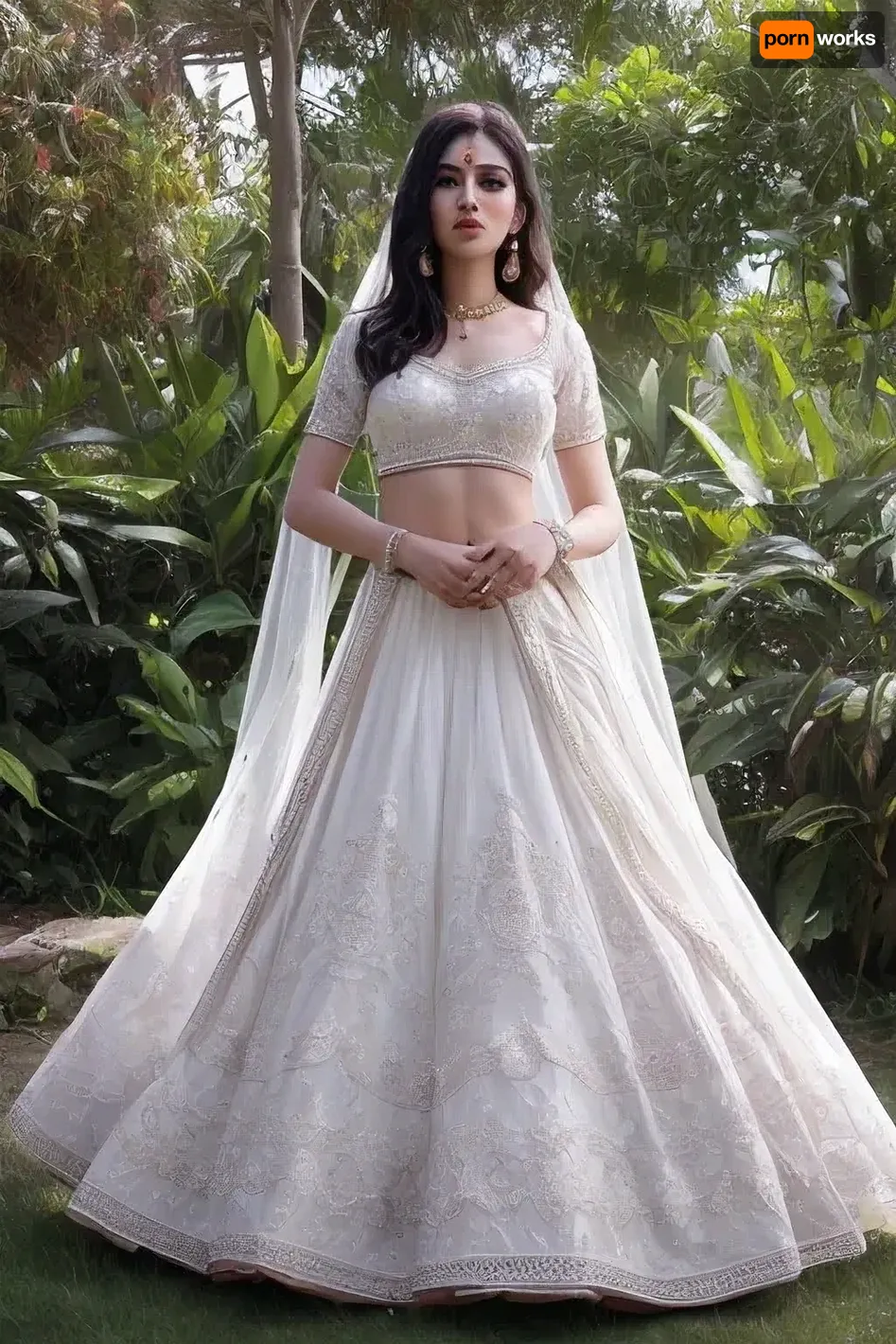 Extremely Milky white skin, ((extremely white complexion)), Indian girl, lehenga choli, full body image