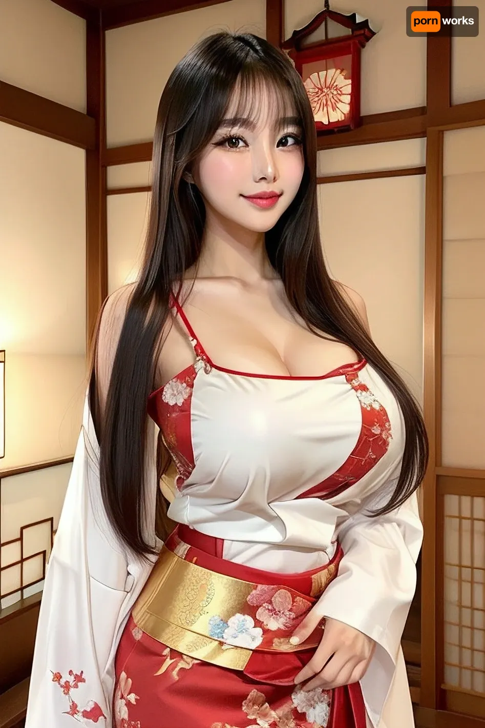 Sexy young asian girl, traditional japanese outfit, perfect fack big breasts, neckline, straight hair, beautiful body, closed, smirk, <lora:koreanDollLikeness:.5> Sexy young asian girl, traditional japanese outfit, perfect fack big breasts, neckline, straight hair, beautiful body, closed, smirk, <lora:koreanDollLikeness:.5>
