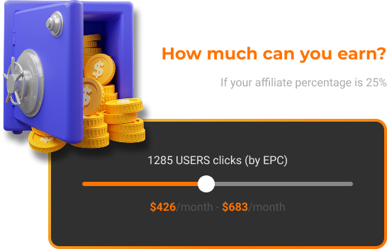 Just compare your earnings per click (EPC) with ours versus the competition — you’ll likely be surprised. We’re confident that our EPC outperforms most of the market, meaning you earn more with us, even at 25%.